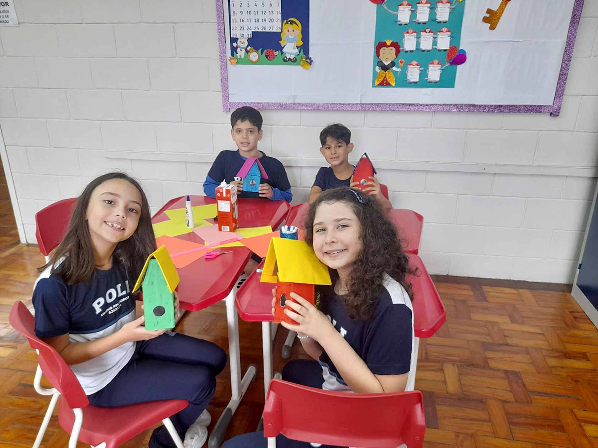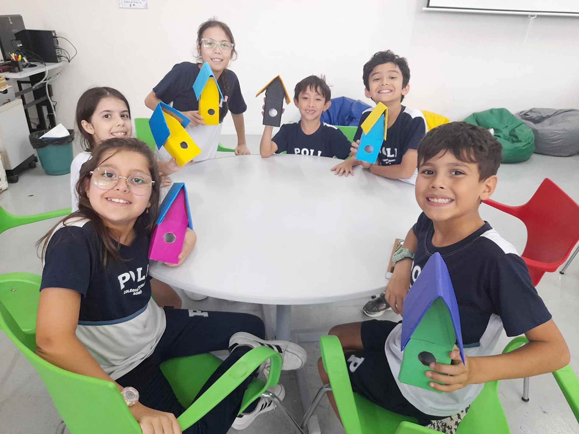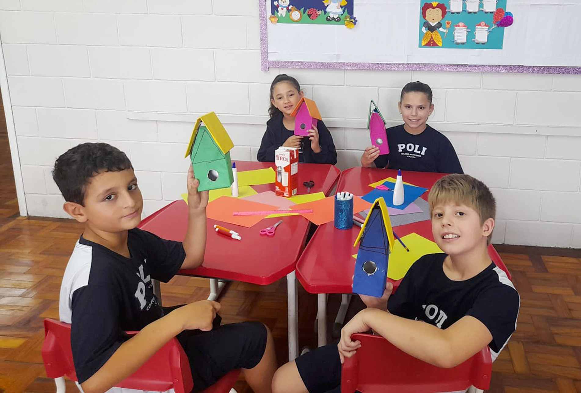 Os alunos do 4º ano do ensino fundamental do Poli 1 e do Poli 2 participaram de uma atividade diferenciada nas aulas de arte que integrou criatividade, aprendizagem e sustentabilidade. A proposta consistiu na construção de casas para aves com materiais recicláveis, incentivando o reaproveitamento de resíduos e o cuidado com o meio ambiente.