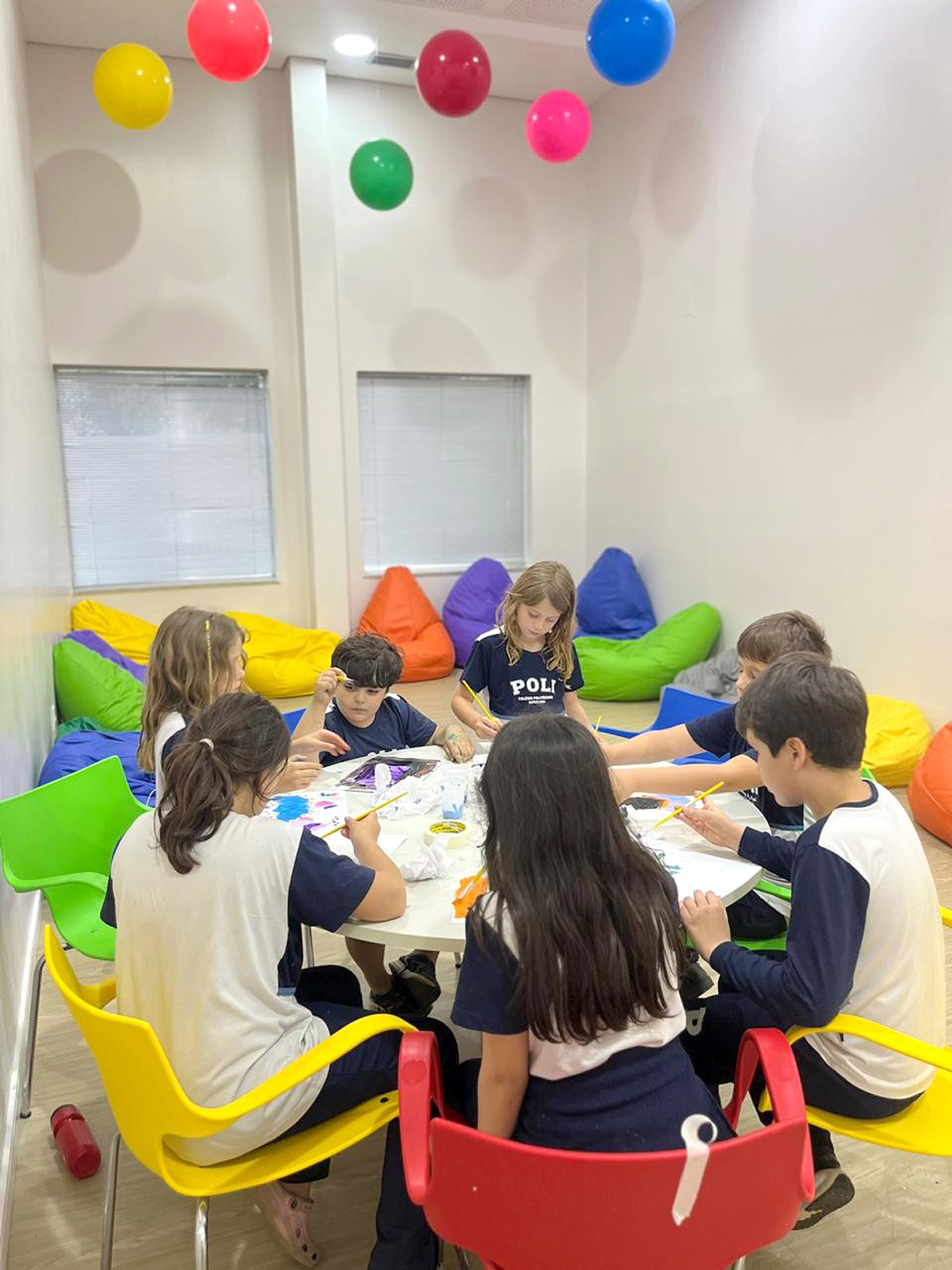 “Por meio dos jogos pedagógicos, os estudantes desenvolvem habilidades como raciocínio lógico, cooperação e resolução de problemas de forma leve e prazerosa. Já as atividades de pintura e expressão artística estimulam a criatividade, a imaginação e o autoconhecimento, além de contribuírem para o desenvolvimento da coordenação motora, da sensibilidade e da expressão individual”, explica a diretora do Politécnico, Luciane Durigan.