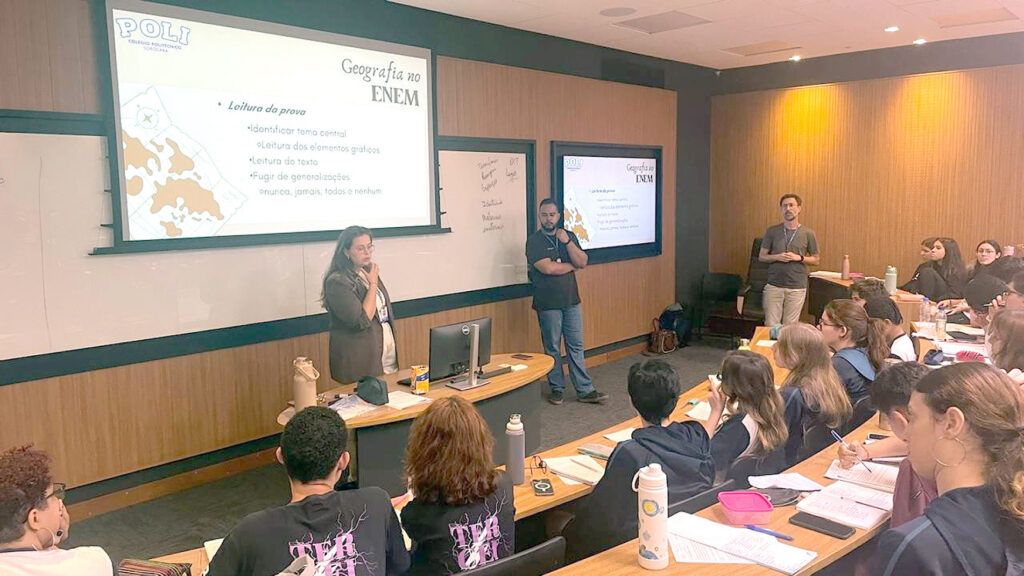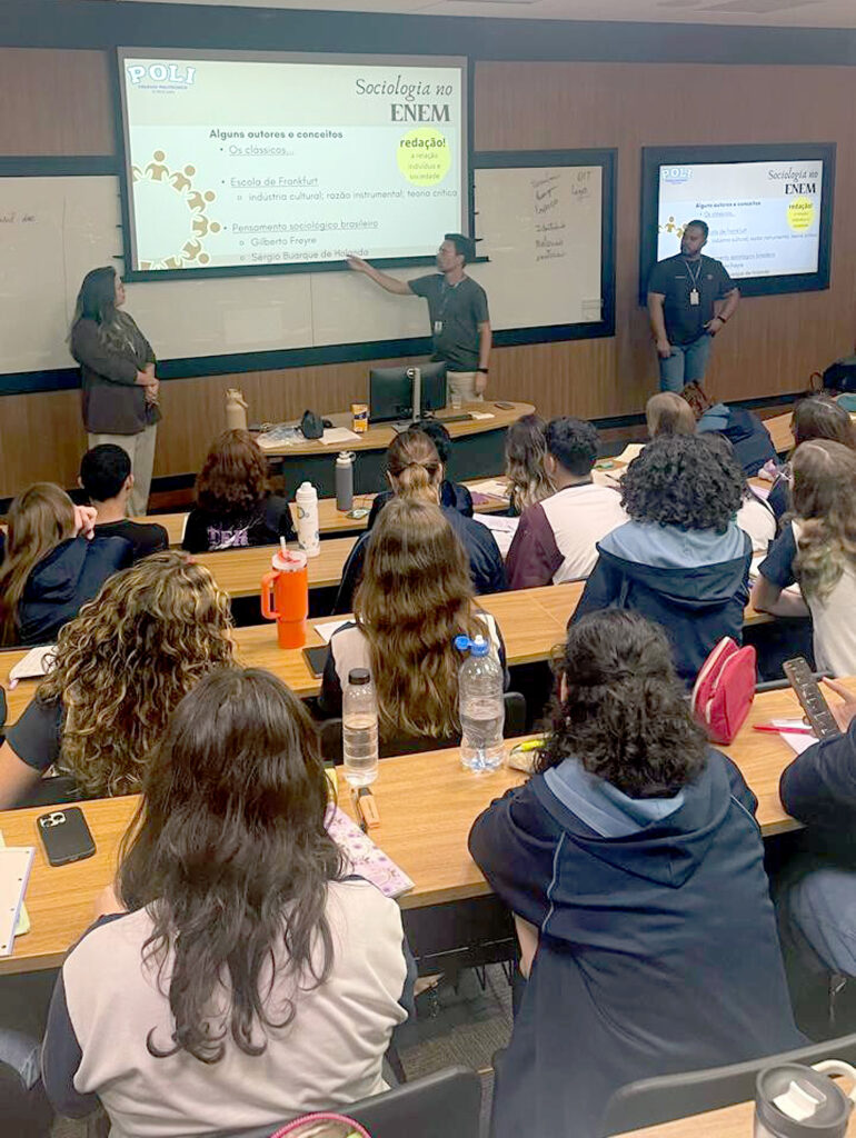 “O encontro foi marcado por momentos de escuta e interação, com professores que conduziram os conteúdos de forma leve e estratégica, resgatando pontos-chave, técnicas de interpretação de texto, competências de leitura e estratégias de escrita. A abordagem dialogada favoreceu o protagonismo dos estudantes e reforçou o vínculo entre conhecimento, realidade e projeto de vida”, ressalta Luciane Cristina Durigan, diretora do Politécnico.