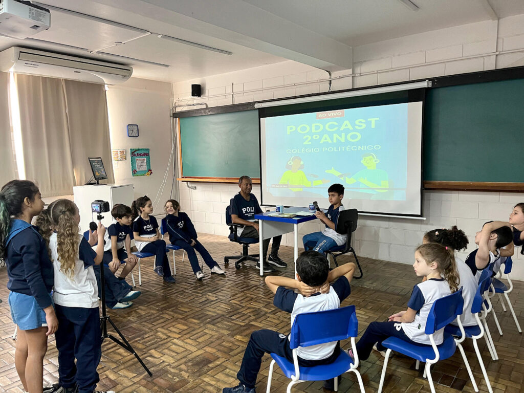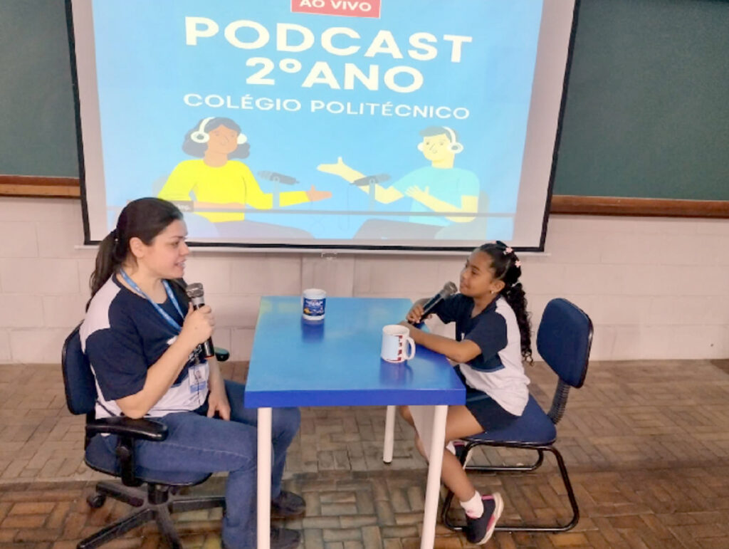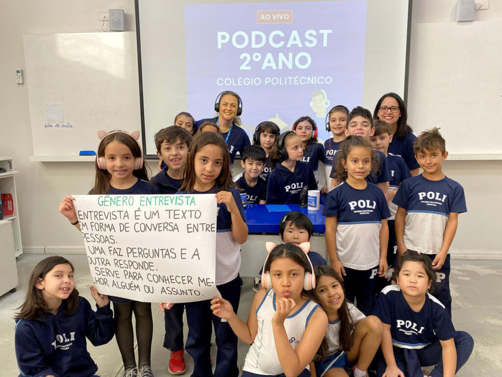 No 2º ano do Ensino Fundamental do Colégio Politécnico, a produção de podcasts mostrou-se uma experiência pedagógica rica, em que o gênero entrevista tem papel central. Ao entrevistar funcionários da escola como convidados de seus episódios, os alunos exercitam habilidades fundamentais da linguagem e da comunicação, ao mesmo tempo em que se envolvem diretamente com a comunidade escolar.