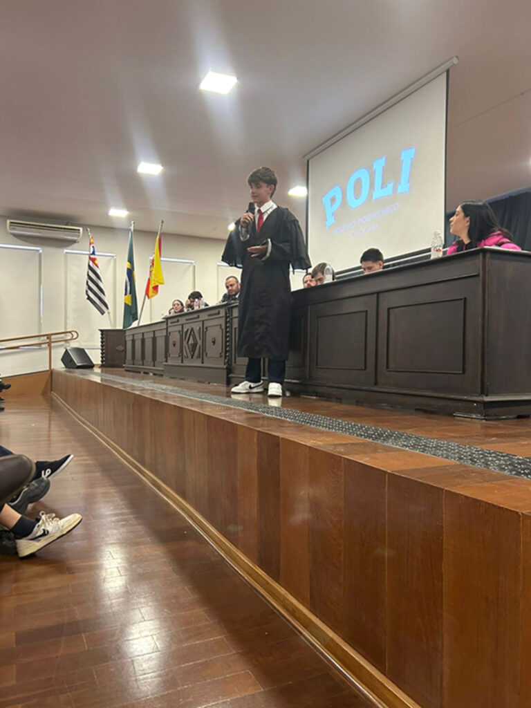 “A atividade, fruto de um projeto interdisciplinar das aulas de Literatura, teve como propósito unir arte, reflexão e conhecimento jurídico, colocando os alunos frente a frente com os dilemas humanos e existenciais que atravessam a narrativa de Carvalho. Cuidadosamente planejado e executado com sensibilidade e rigor, o projeto transformou a leitura em uma experiência viva, concreta e transformadora”, explicou a diretora do Poli, Luciane Durigan.